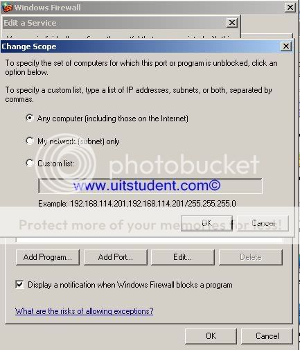 -Tính năng Window Firewall trong XP cho phép bạn giới hạn địa chỉ IP truy cập của máy tính từ xa khi dùng Remote Desktop.Để làm việc này vào Control Panel-->Window Firewall.Chọn tab Exception.Chọn Remote Desktop-->Edit-->Change Scope.Như hình dưới